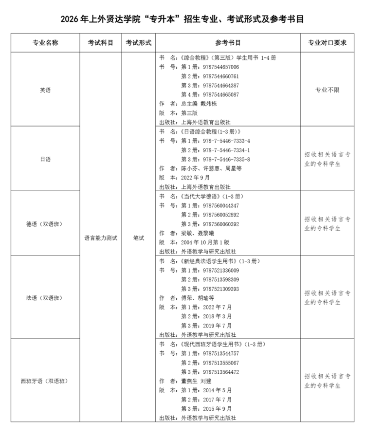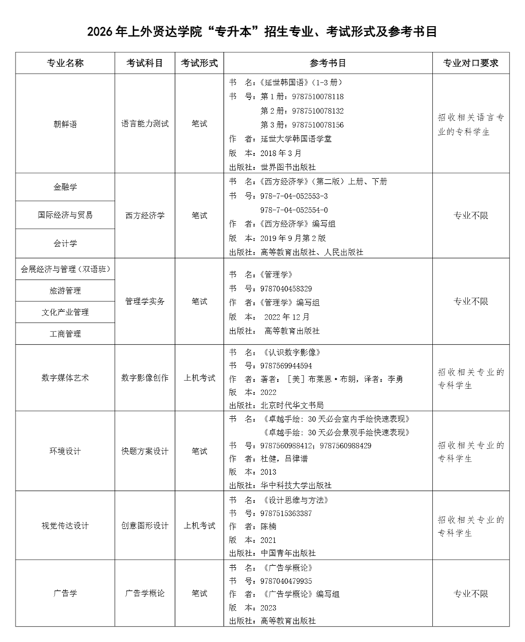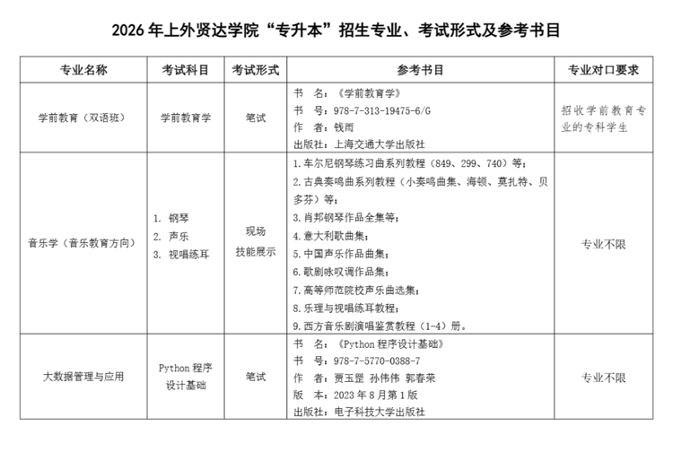 2026年贤达应届专升本招生专业和对口要求变动如下: