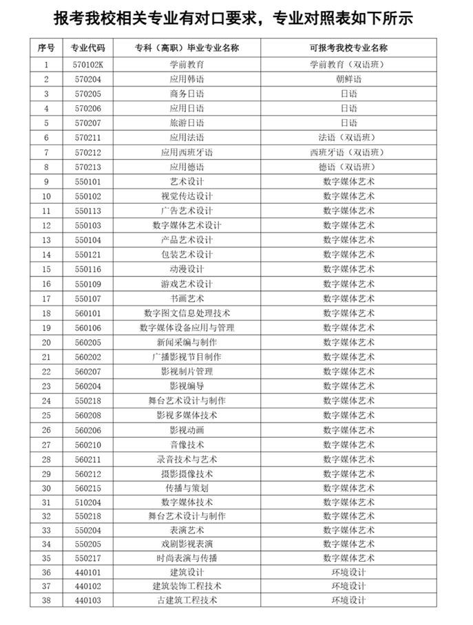 2、英语(商务方向)、会展经济与管理(全英语教学班)两个面试专业招生不再招生,音乐学(音乐教育方向)继续面试招生不变