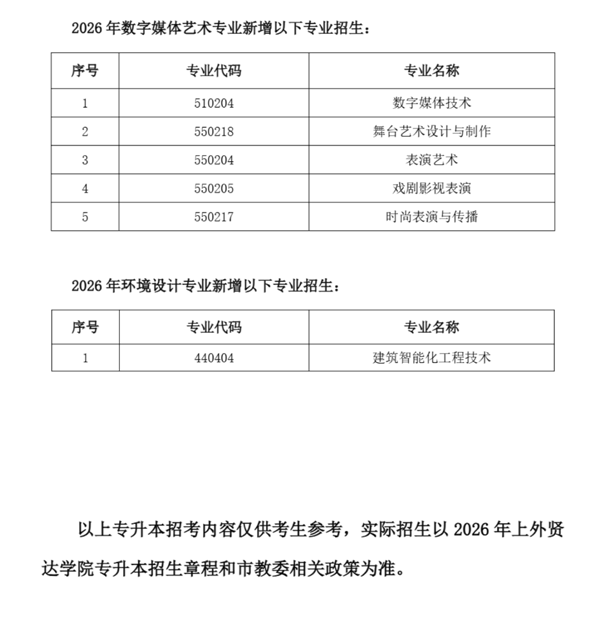5、2026年数字媒体艺术专业新增以下专业可报考:510204数字媒体技术、550218舞台艺术设计与制作、550204表演艺术、550205戏剧影视表演、550217时尚表演与传播