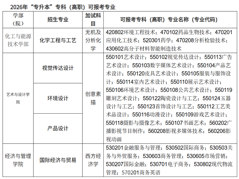 2026上海应用技术大学专升本招生对口要求及考试大纲公布!