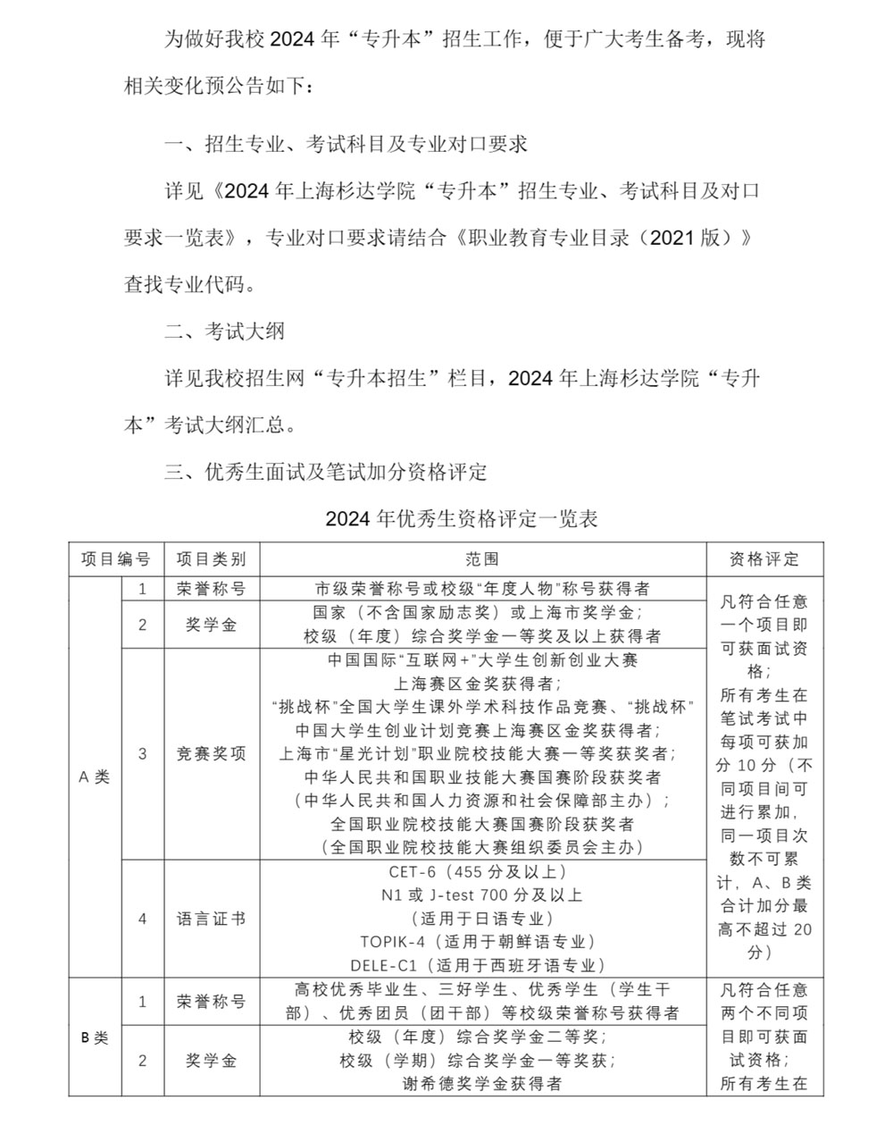 杉达2024专升本招生专业、考试科目、考试大纲变化内容如下: