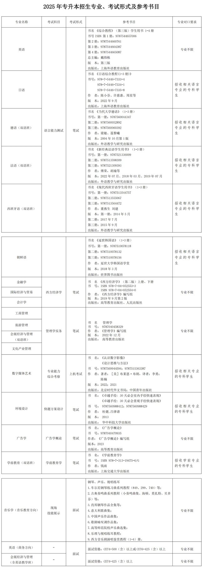 2026年杉达学院“专升本”招生专业、考试科目及对口要求一览表