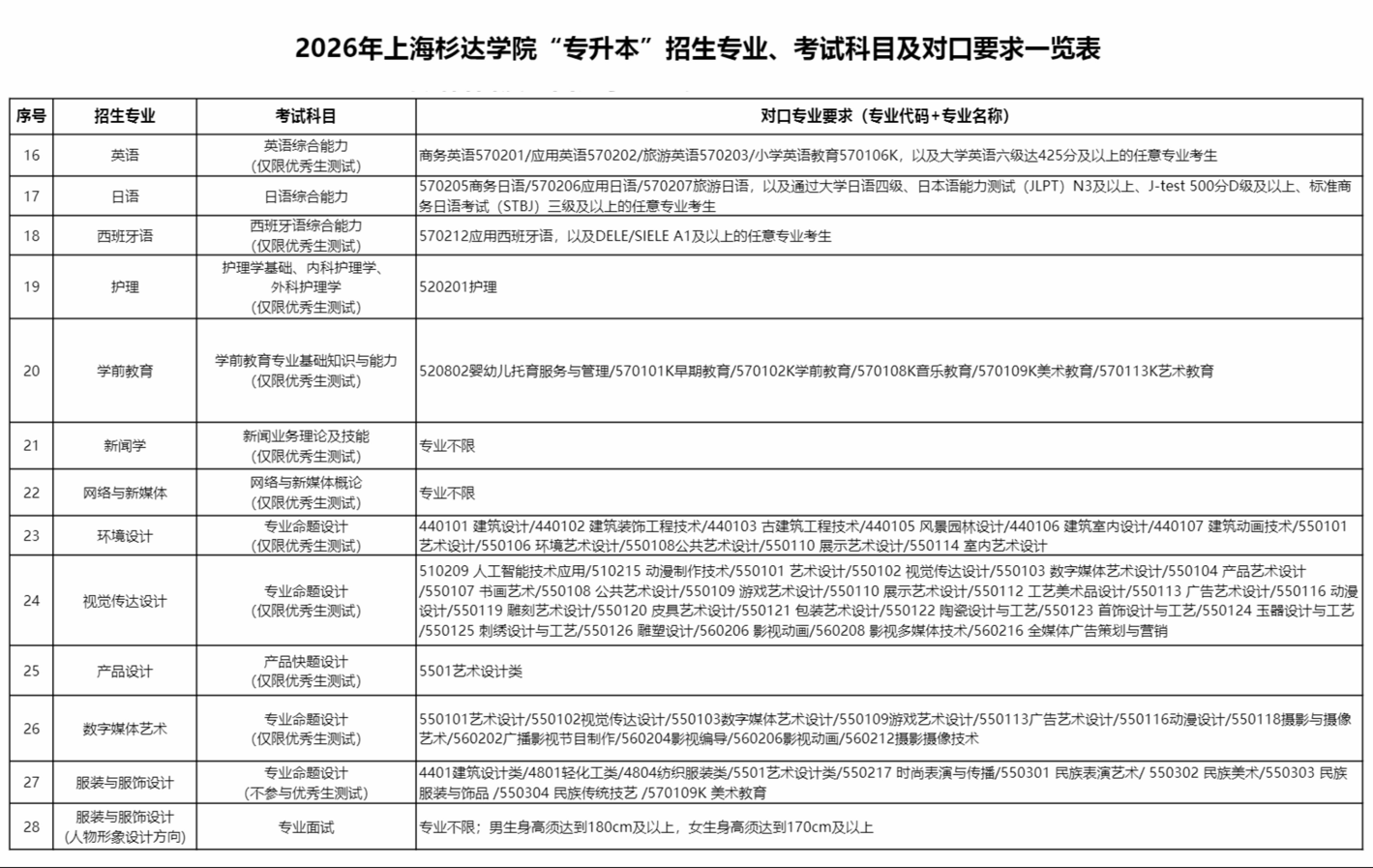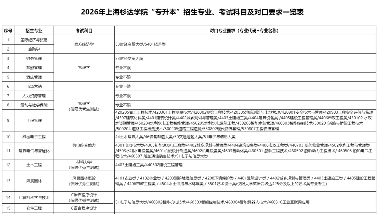 2026年上海杉达学院专升本考试大纲及优秀生及笔试加分评定已公布!