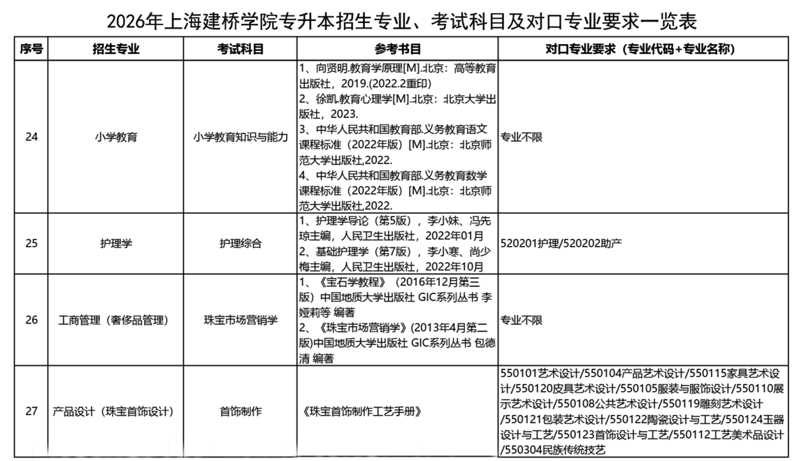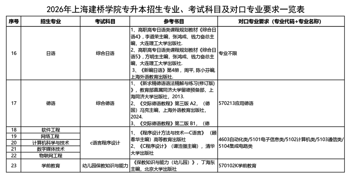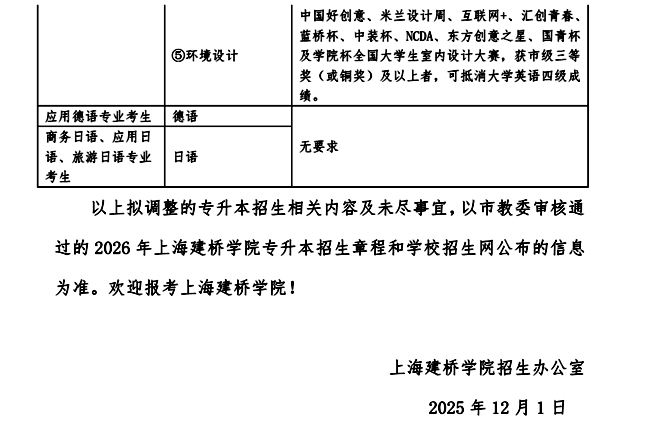 上海建桥学院2026年“专升本”招生专业考试对口要求相关变化已公告!